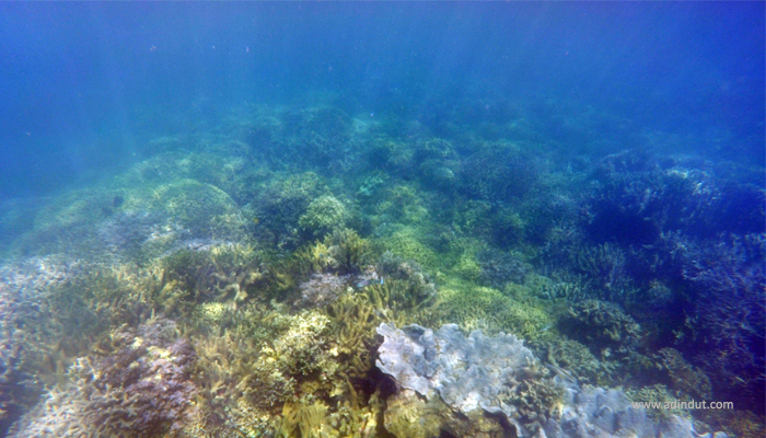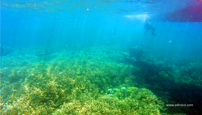 | Hamparan terumbu karang di Pulau Sangiang |