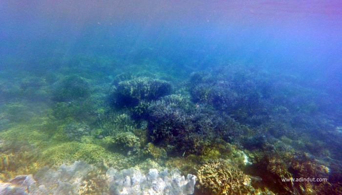 Lagoon Waru menjadi lokasi snorkeling pertama kami. Dari atas kapal aku melihat air laut yang berwarna hijau dan bayang-bayang terumbu karang yang terhampar luas. Satu persatu dari kami meloncat ke dalam air, menikmati kesempatan untuk mengintip keindahan dunia bawah laut Pulau Sangiang. Sayang, kenikmatansnorkeling di Lagoon Waru sedikit terganggu oleh arus laut yang cukup kencang. Itu sebabnya kami tidak terlalu lama di Lagoon Waru. Kami pun berpindah ke titiksnorkeling selanjutnya yaitu Lagoon Bajo. Di Lagoon Bajo inilah aku baru benar-benar dapat meluapkan rasa rinduku, air laut yang jernih, arus laut yang tenang, ikan yang banyak dengan berbagai rupa dan jenis, serta hamparan terumbu karang yang jaraknya sangat dekat dengan permukaan air laut telah mampu membuatku berlama-lama berada didalam air.